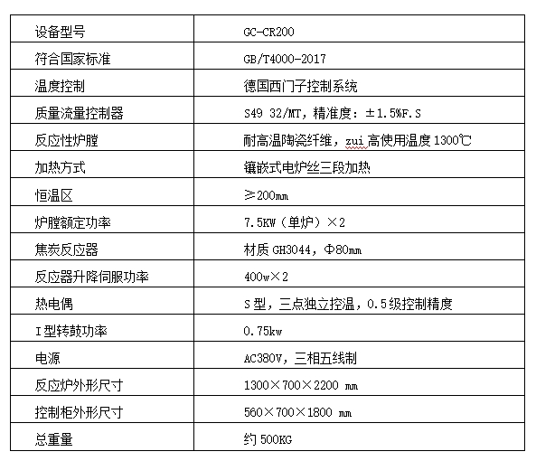 3、焦炭反應(yīng)器材質爲耐高(gao)溫合金鋼GH3044,内徑(jing)Φ80mm。