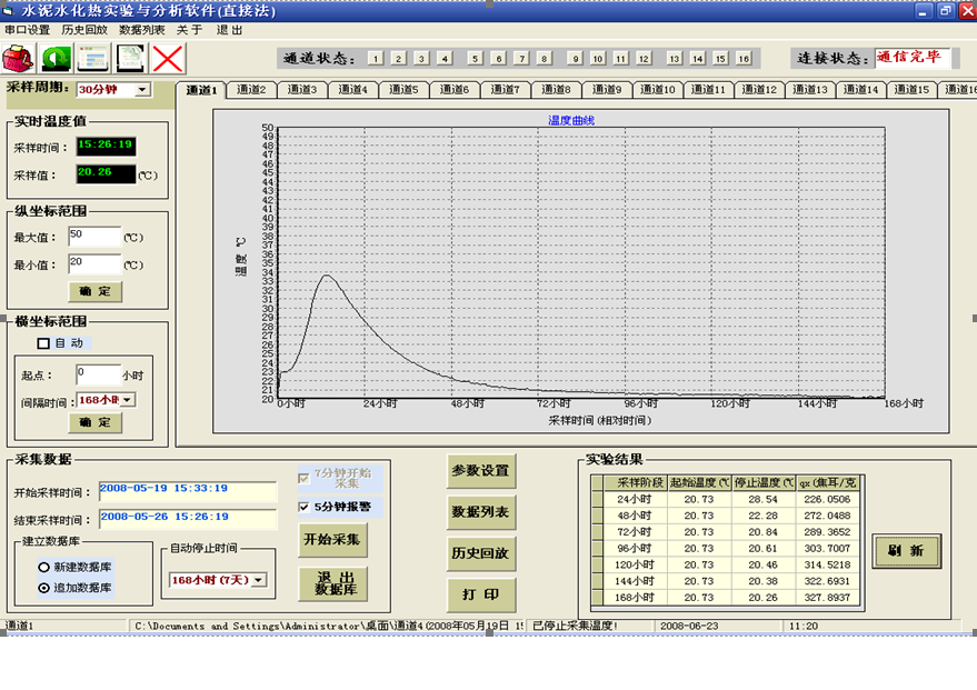 可(ke)進行試驗參(cān)數設定,設置(zhì)自動采集/停(tíng)止/記錄/分析(xi)/計算,實時顯(xiǎn)示每通道放(fang)熱曲線,進行(háng)1~7天水合熱計(ji)算并生成測(ce)試報告。界面(miàn)簡潔友好,16個(ge)通道獨立運(yùn)行,用💰顔色指(zhǐ)㊙️示每通道的(de)實時采集狀(zhuàng)态,并設有數(shù)據追加/回放(fàng)等功🧡能,數據(ju)庫文件可導(dao)👌入EXECL文件做進(jin)一步分析。